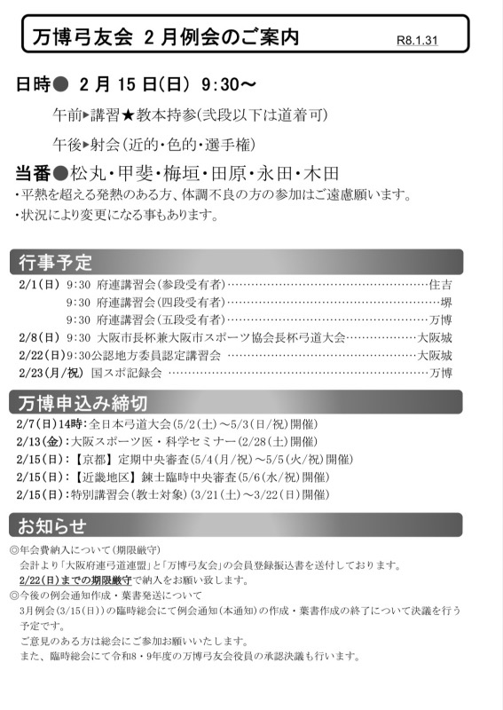 • 弓道場予定表